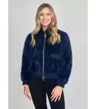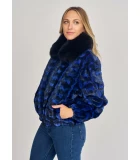 Mosaic Pieced Mink Bomber Jacket in Electric Blue