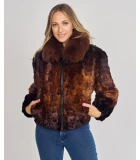 Mosaic Pieced Mink Bomber Jacket in Whiskey Ombre
