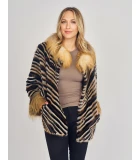 Multicolor Mink Fur Jacket with Fox Fur Sleeves