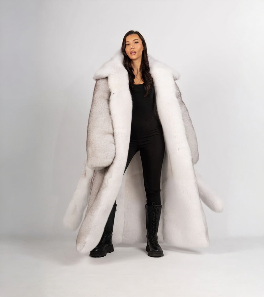 Amadee | Luxury Saga Double Face Scandinavian Natural Blue Fox & White Fox Long Coat Lavish – Fur Belt
