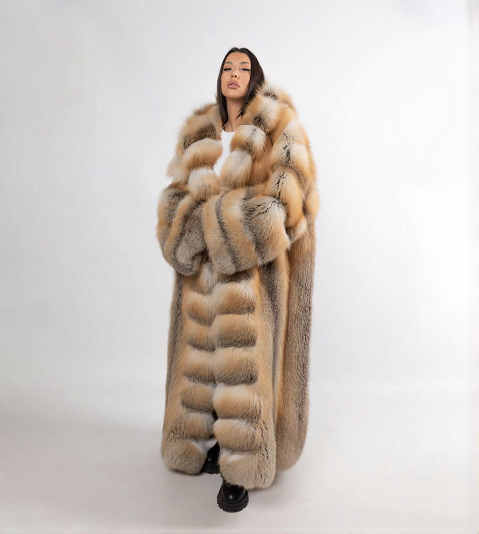 Luxury Scandinavian golden island fox full length coat with lavish hood