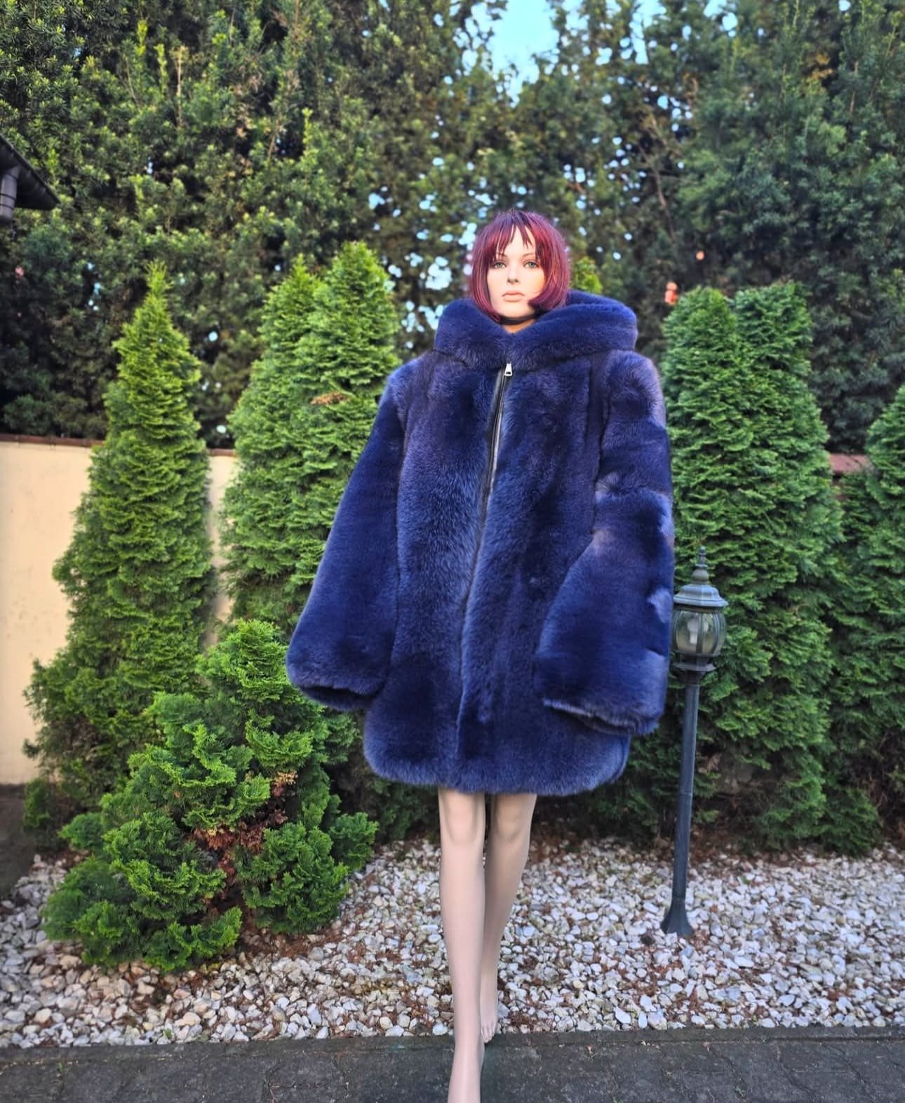 Be the first to review “Amity | Luxury Double Sided Navy Blue Fox Fur Jacket Full Skins With Lavish Hood”