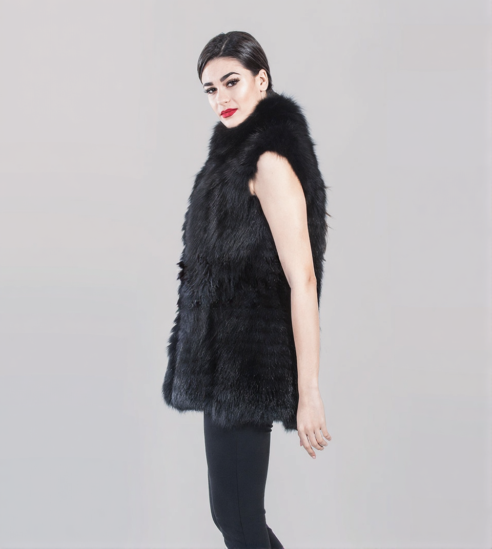 Arabella | Luxury Scandinavian Black Fox Fur Vest With Small Collar