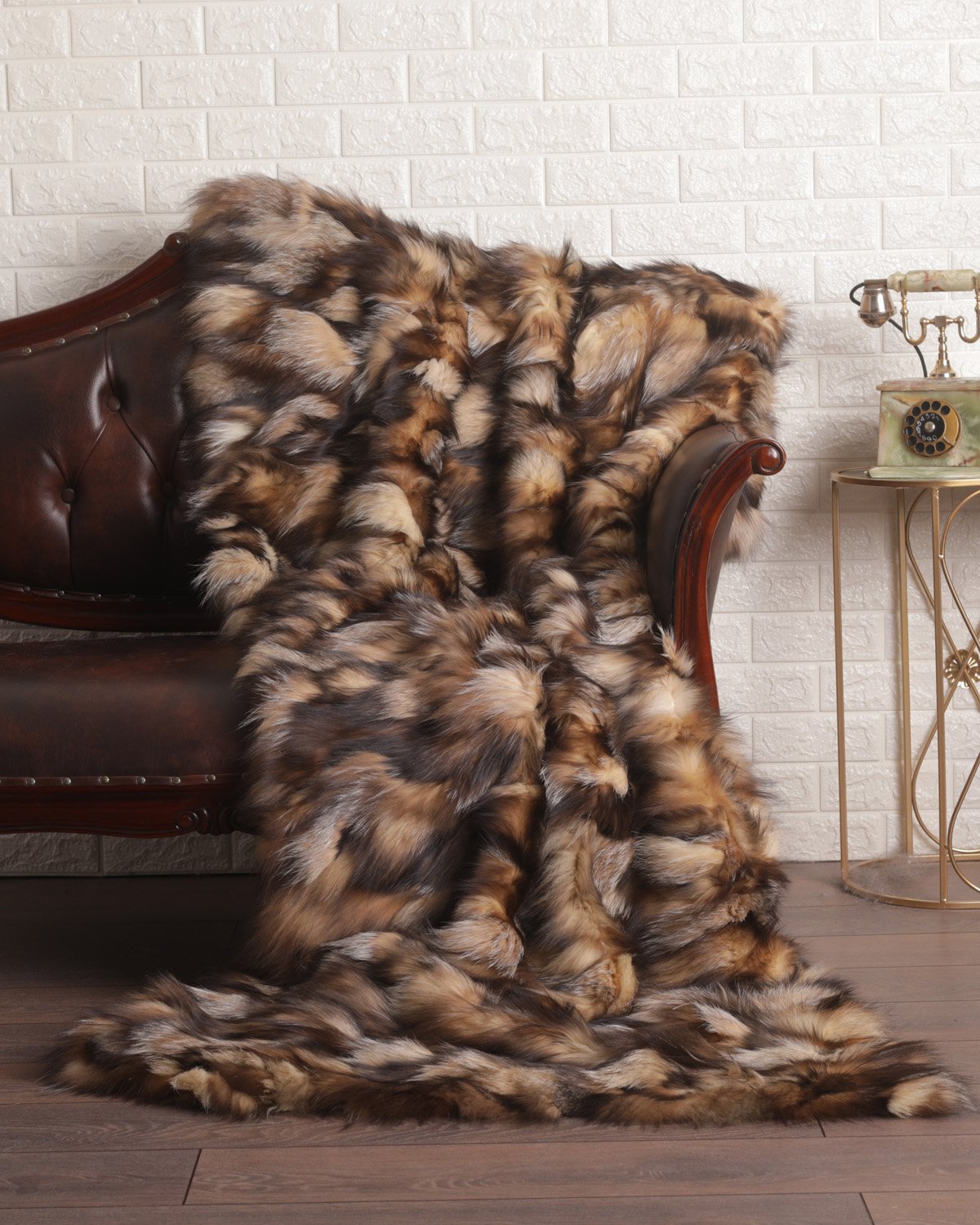 Beige Brown Crystal Fox Fur Fur Blanket Throw Cover