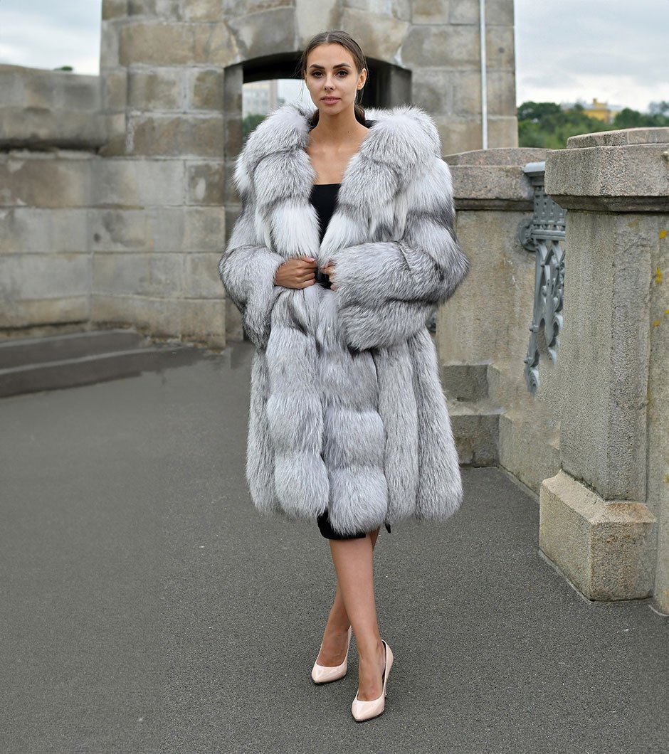 Billie | Luxury Platinum Fox Fur Jacket – Coat Lavish Double Side Fur Hood