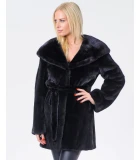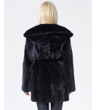 Cast a spell on any onlooker with our charming Black Hooded Mink Coat for women. Thick and soft mink fur has a matching large hood for a dramatic look. A matching belt at your waist hugs your figure. A button loop closure at the neck and snap clips adjust easily.