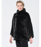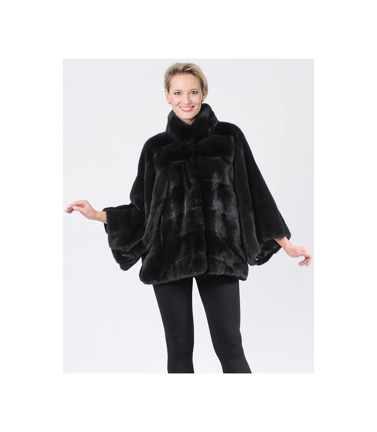 The Black Mink Coat with Bell Bottom Sleeves is a marvelous design for women to wear on the town. Long hair mink fur is luxurious with wide sleeves and a layered horizontal design. The stand-up collar is sophisticated with four snap clip closures and two versatile side entry pockets.