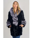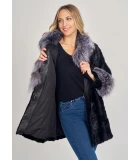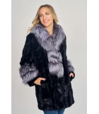 Black Mink Coat with Silver Fox Collar & Trim