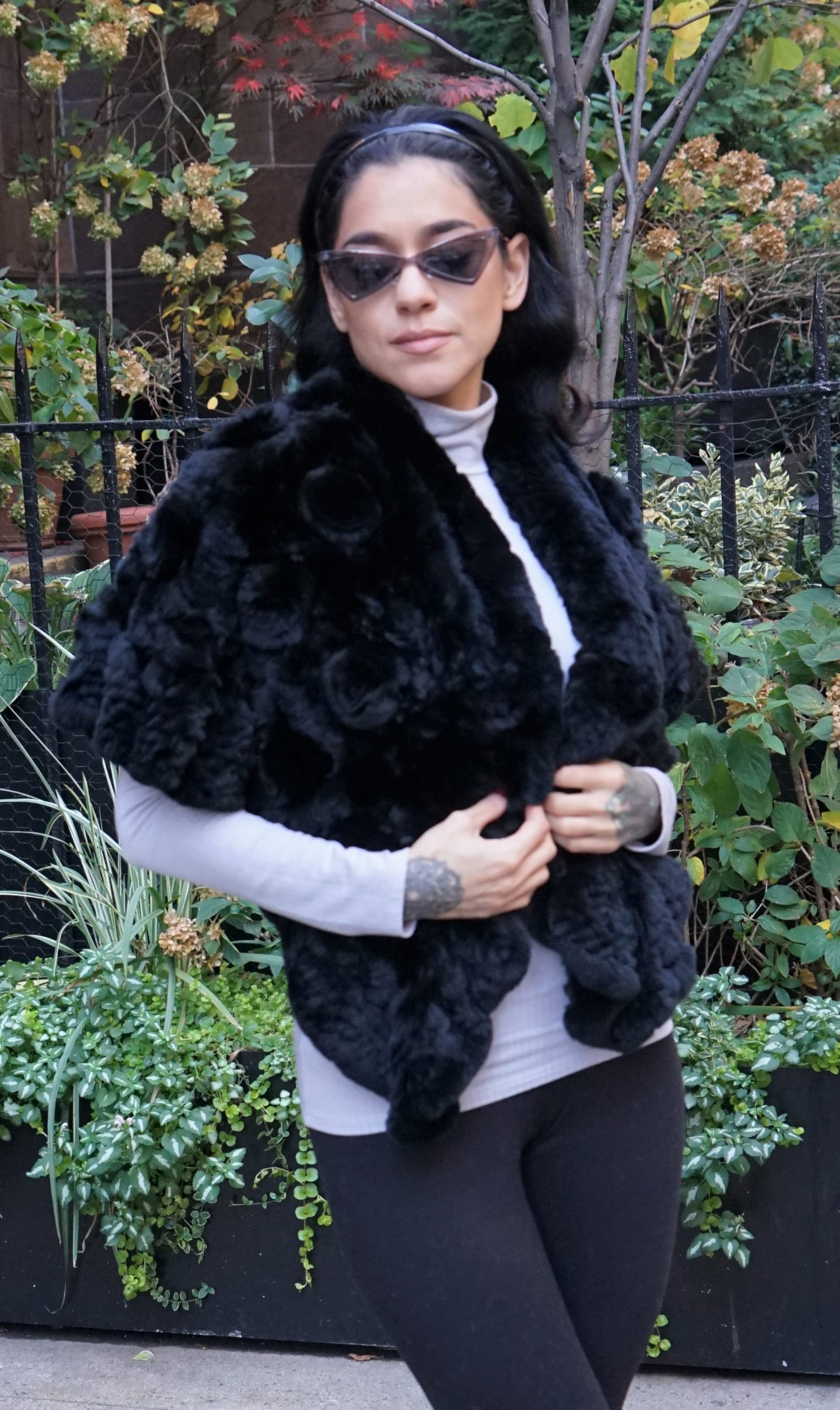 Black Rex Rabbit Capelet Roses