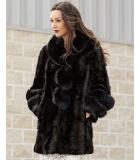 Black Sectioned Mink Jacket with Fox Collar & Trim Description