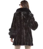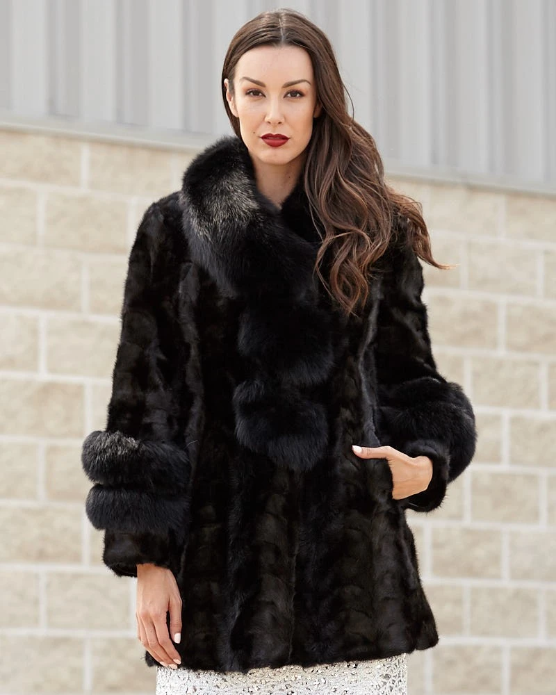 Black Sectioned Mink Jacket with Fox Collar & Trim