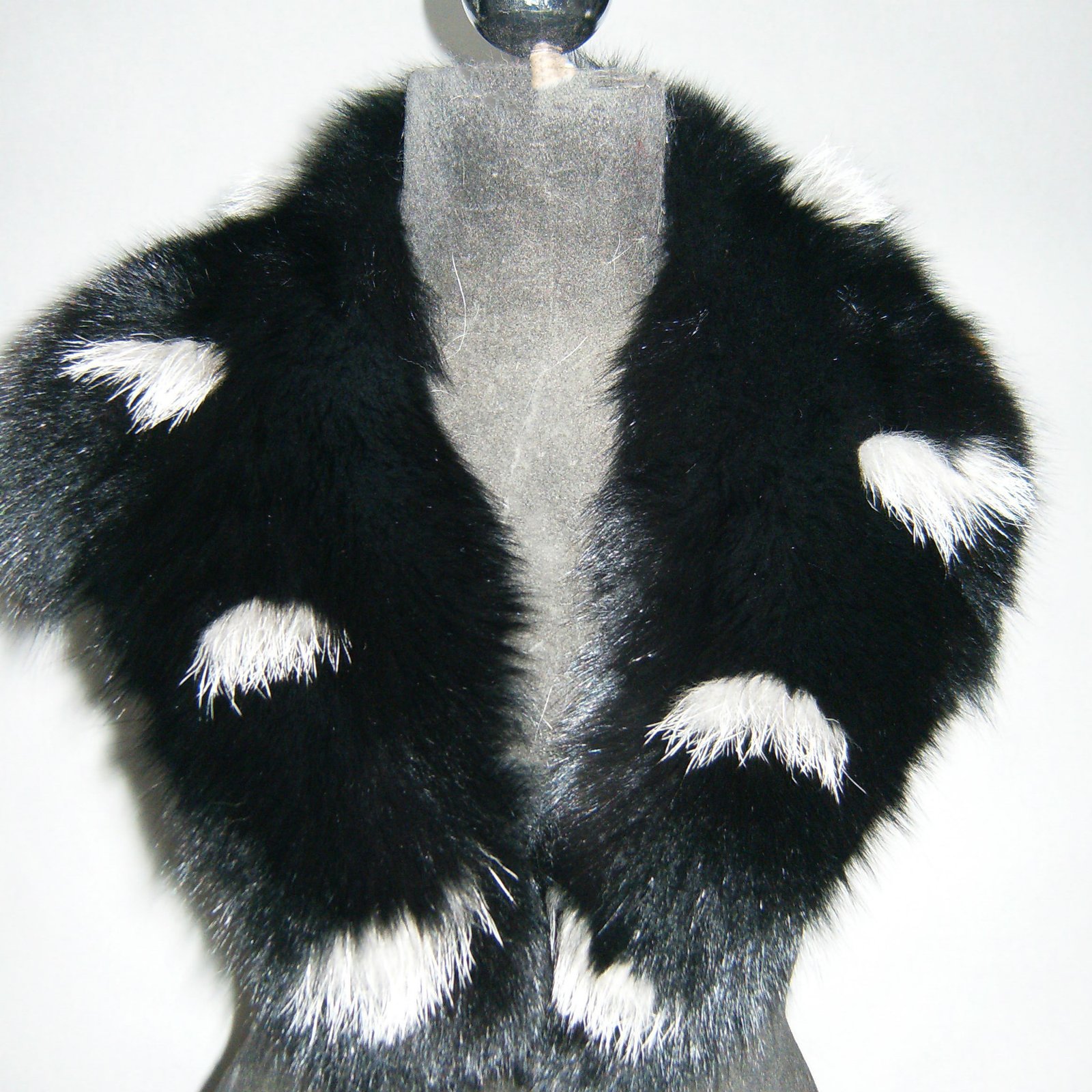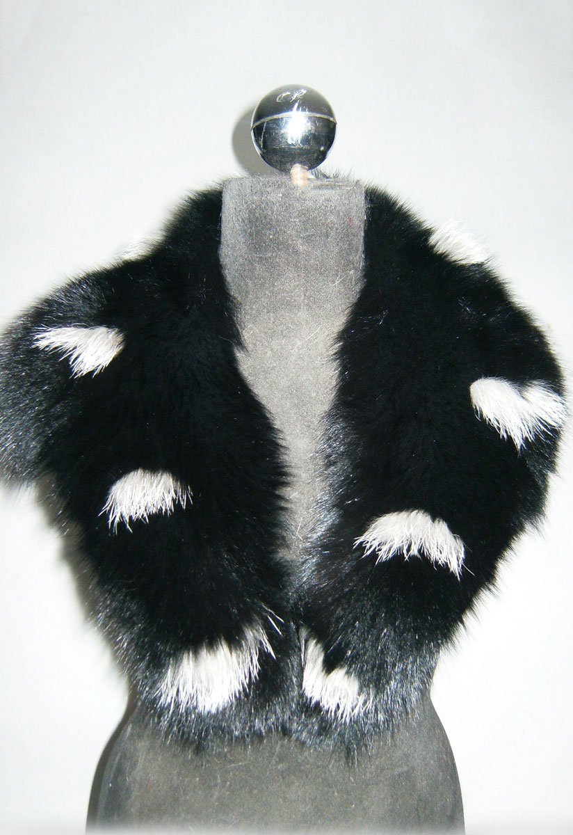 A black & white fox fur collar made by our fur making business located in Siatista Greece . Lined with silk inner lining and lamb’s wool for extra support and shape . Incospicuous hooks so that it can be added directly to the coat of your preference . Use it to give a classy touch to your favorite fur eoats, fur jackets, fur vests or any other type of garment your imagination and taste lets you come up with.