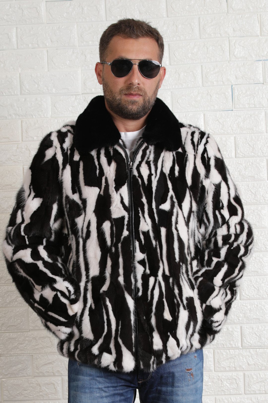 Black White Mink Fur Jacket