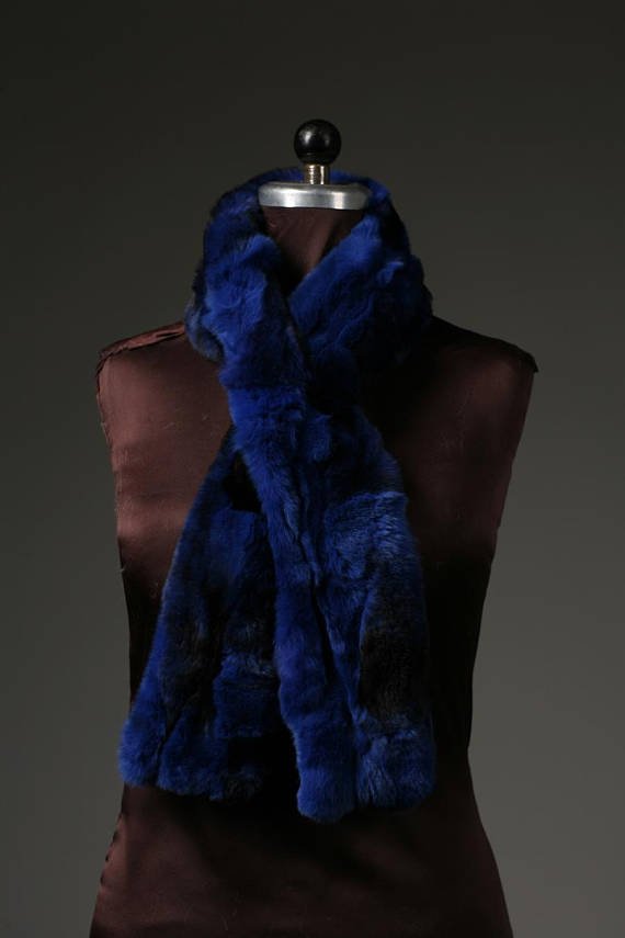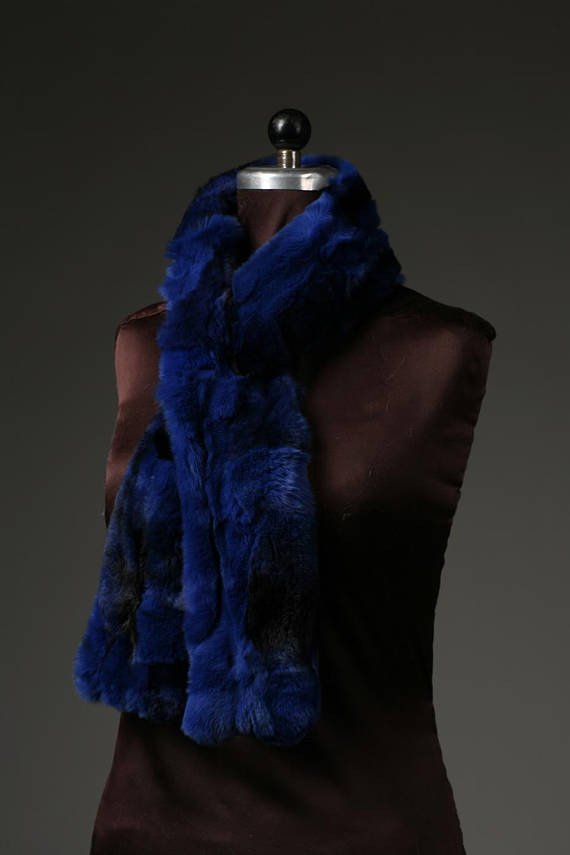 Blue Black Rex Rabbit Fur Scarf collar