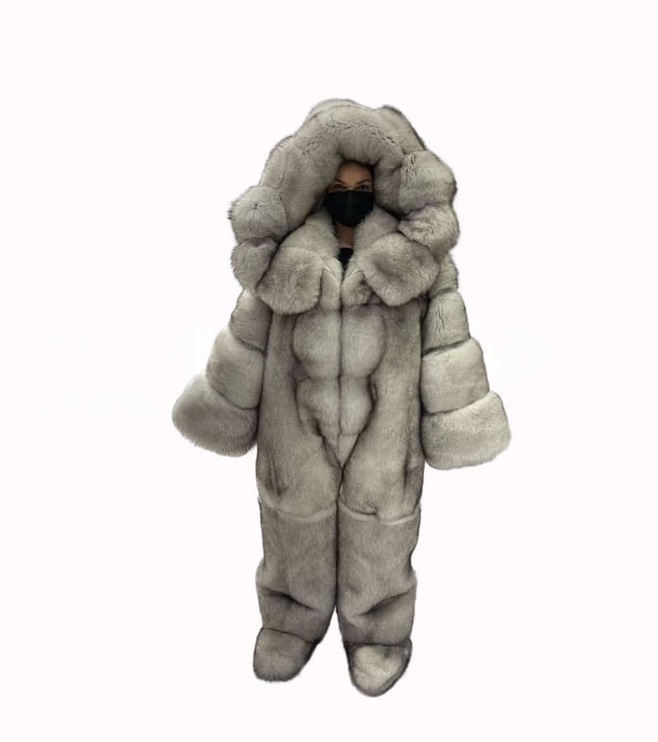 Blue Fox Double Side Fur Costume With Huge Double Side Hood