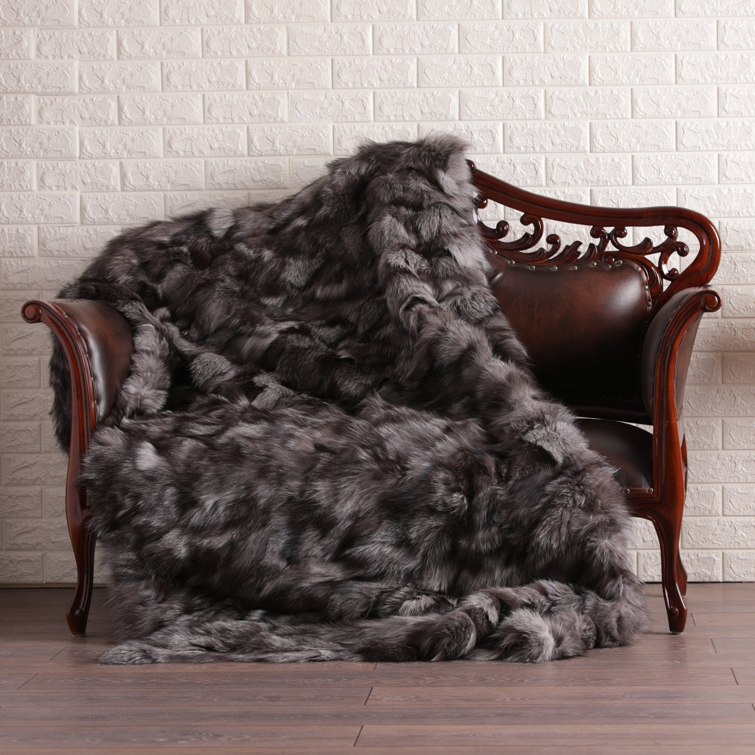 The Blue Frost Fox Fur Blanket or Throw offers a striking blend of luxury and eco-conscious design. This exquisite piece features a complex natural color palette with multiple shades of gray, creating a visually captivating effect. The matte finish gives it a sophisticated touch, perfectly complementing its aesthetic appeal.