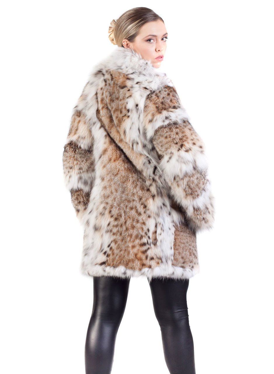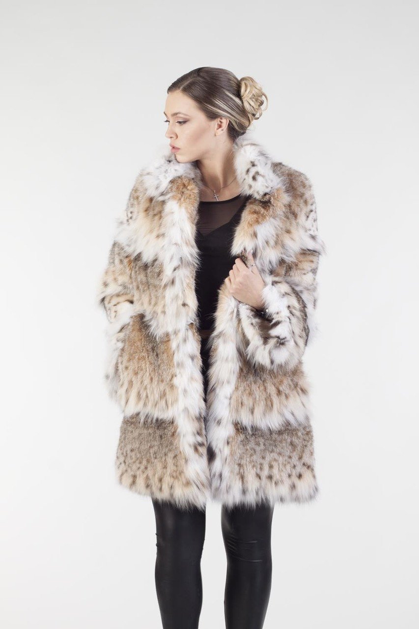 Dare , seduce ,mesmerize ! The Desert Seduction lynx fur coat is meant to receive compliments. Wear with black leather pants or with off white slacks and brown castor leather boots. Made of CITES approved lynx bobcat fur.