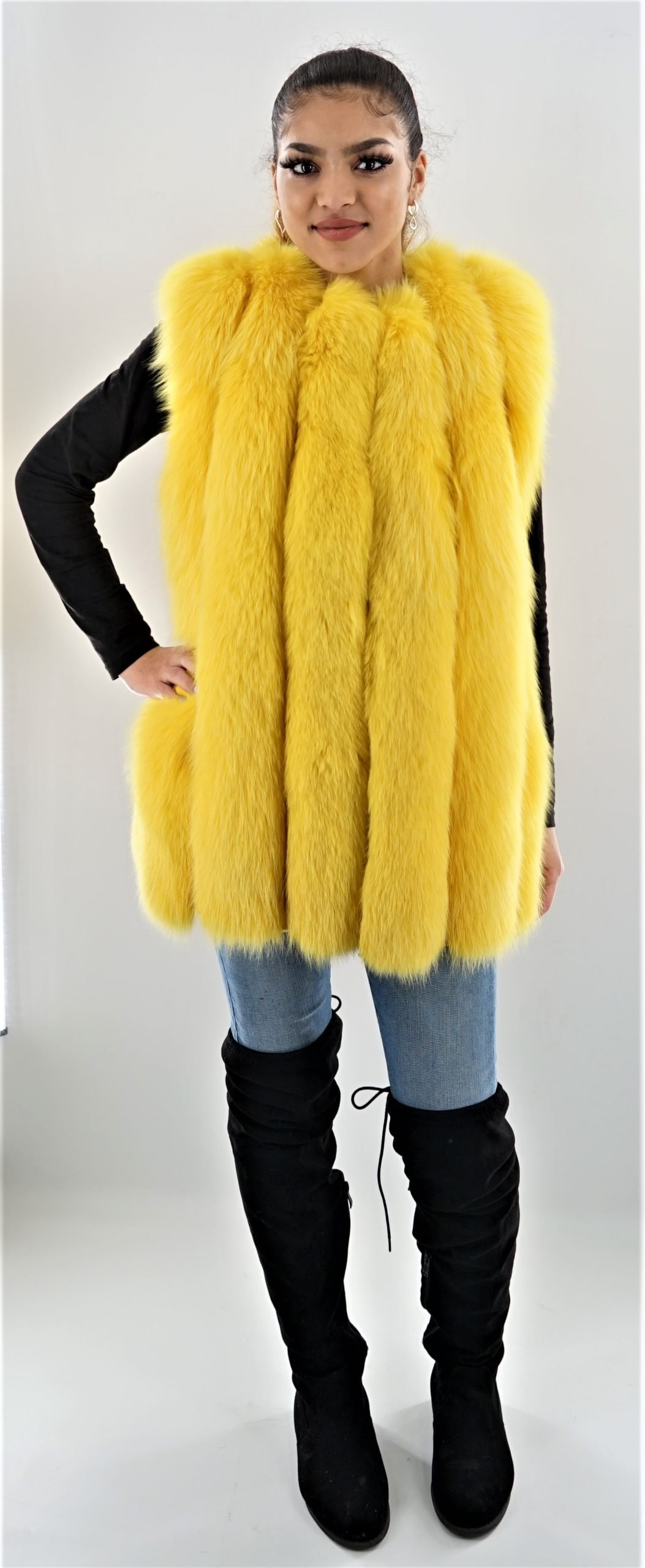Be the first to review “Canary Yellow Vertical Fox Fur Vest 00756” Cancel reply