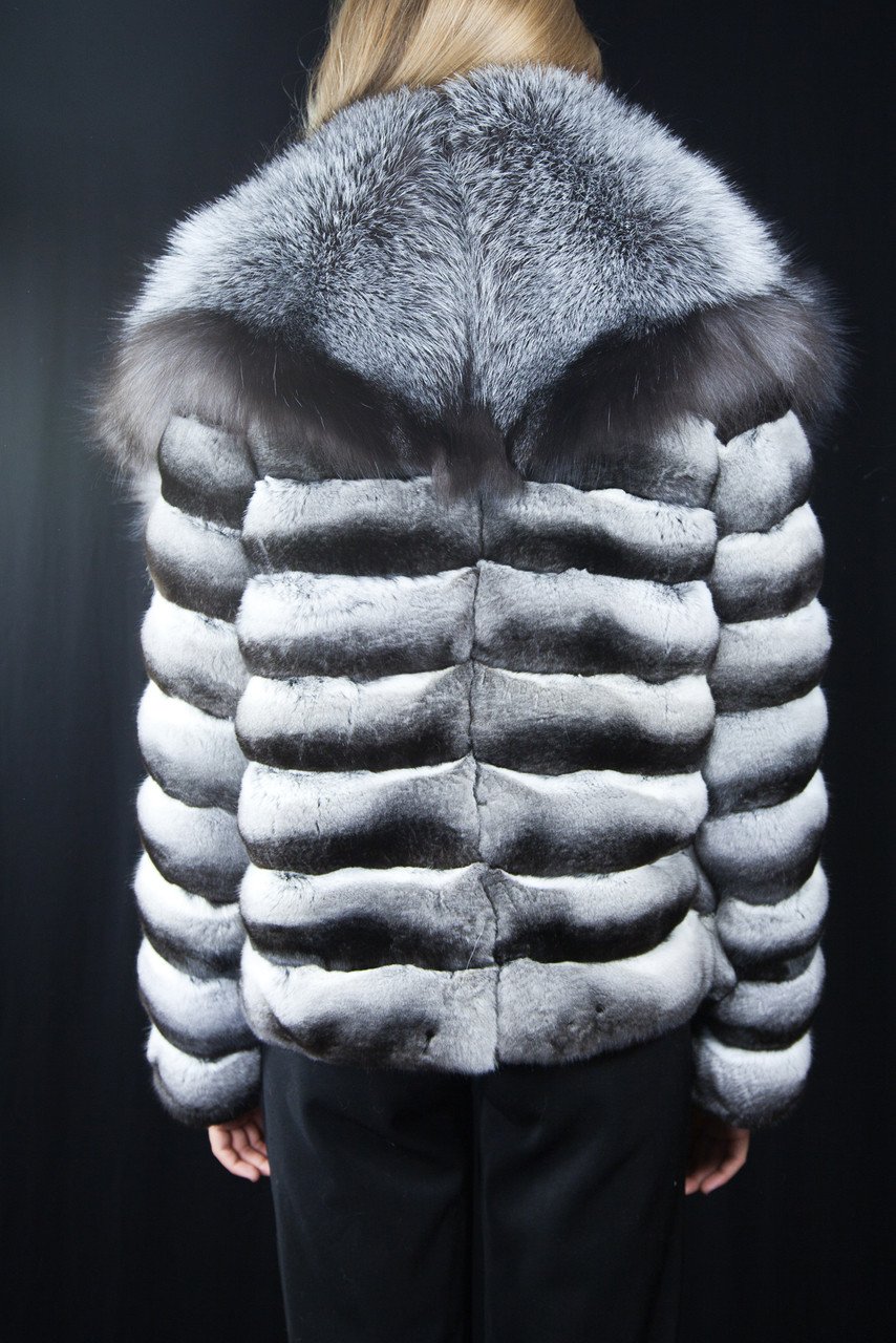 Chinchilla Fur Jacket Silver Fox Collar