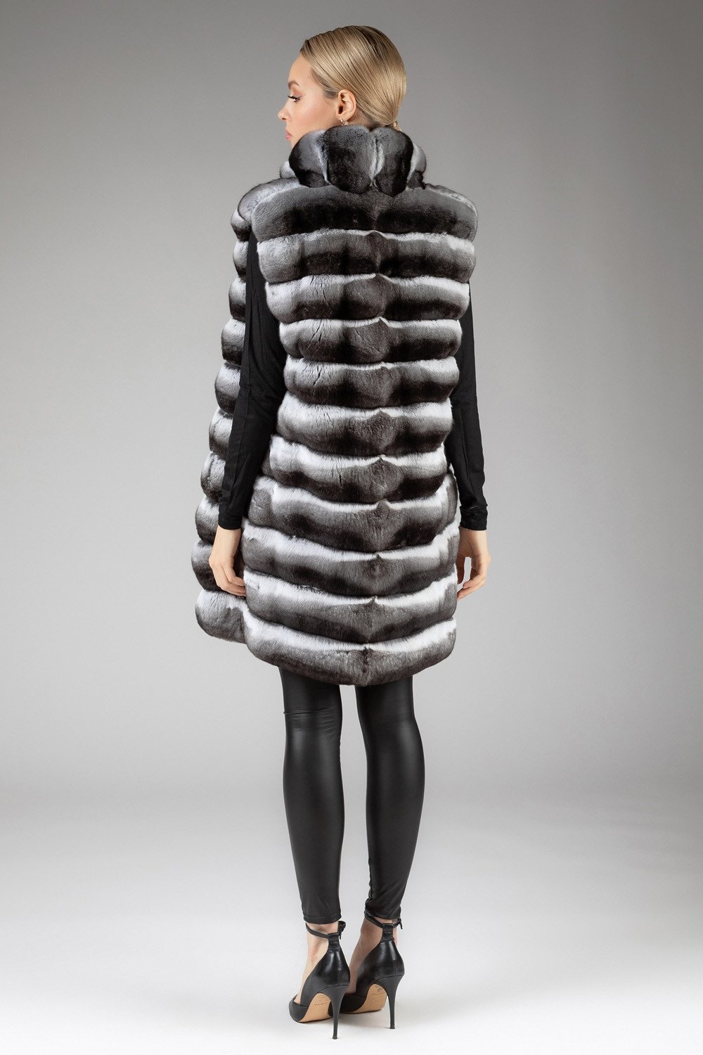 A chic and versatile addition to your wardrobe that combines the timeless allure of chinchilla fur with contemporary design. This vest exudes sophistication and style, making it a perfect statement piece for any occasion.