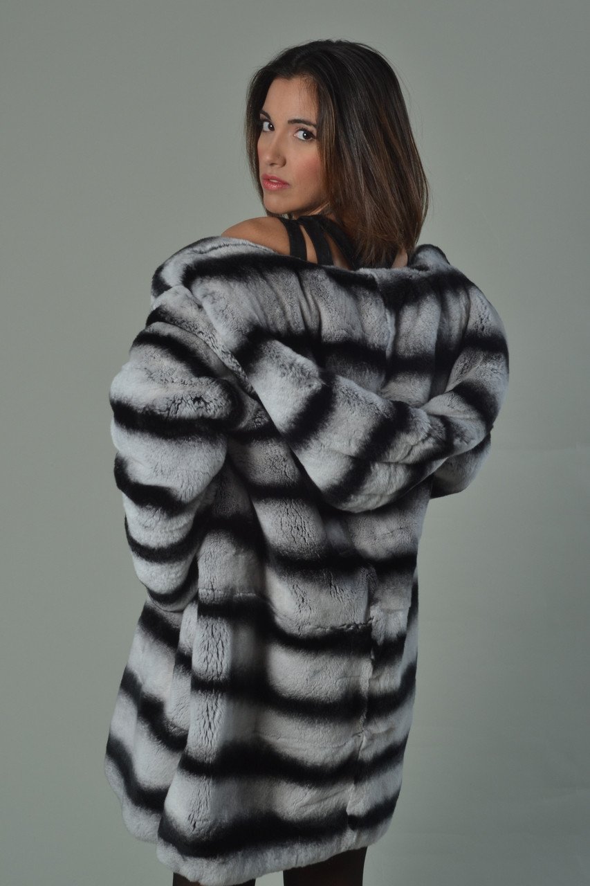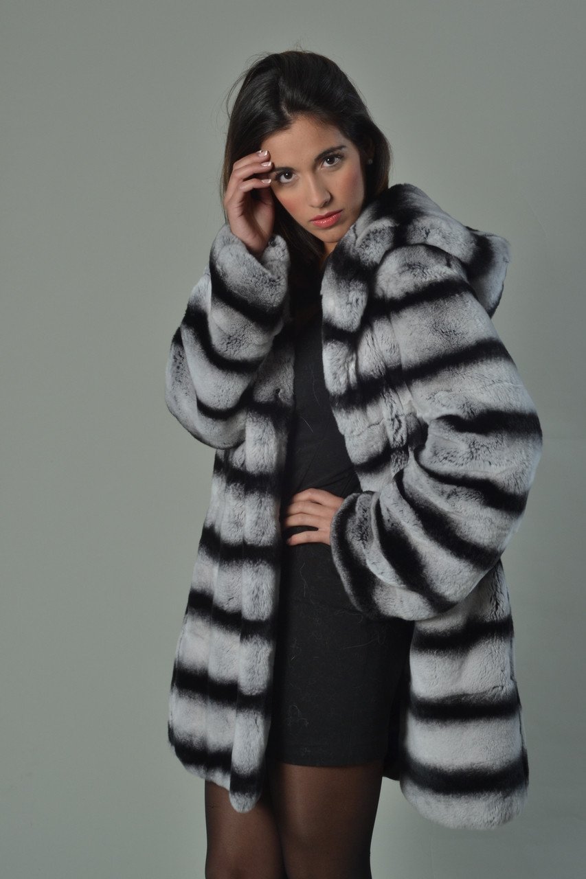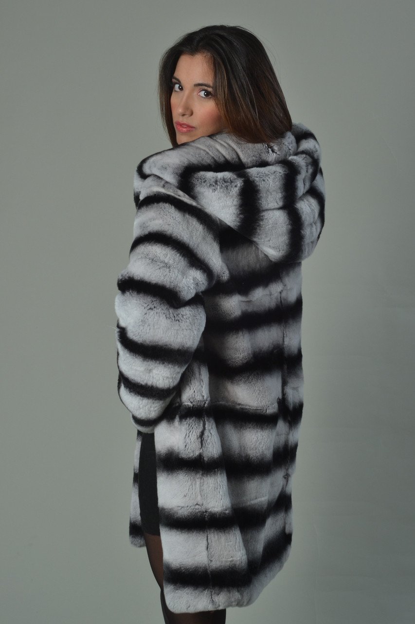 Chinchilla Rex Fur Coat Hooded Mid Hip Length