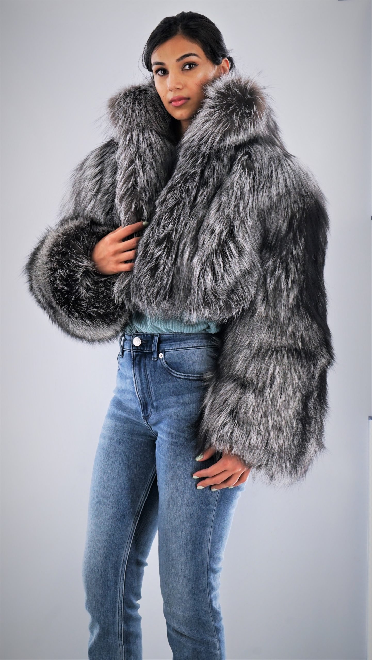 This classy silver fox jacket is perfect for shopping and looking fashionable.