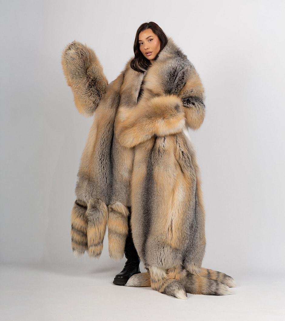 Corinne | Saga Set Double Face Scandinavian Golden Island Fox & White Rex Boa-Cape With Detachable Tails & Huge Gloves