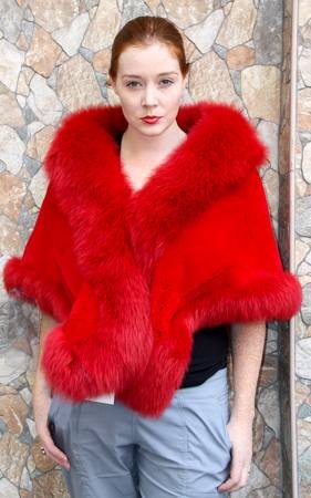 Crimson Red Rex Rabbit Fox Fur Stole