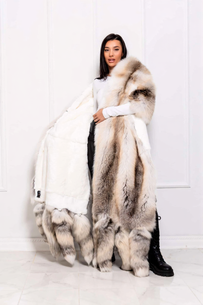 Be the first to review “Danni | Luxury Rare Double Face Scandinavian Fawn Light Fox & White Rex Fur Boa-Cape With Detachable Tails” Cancel reply