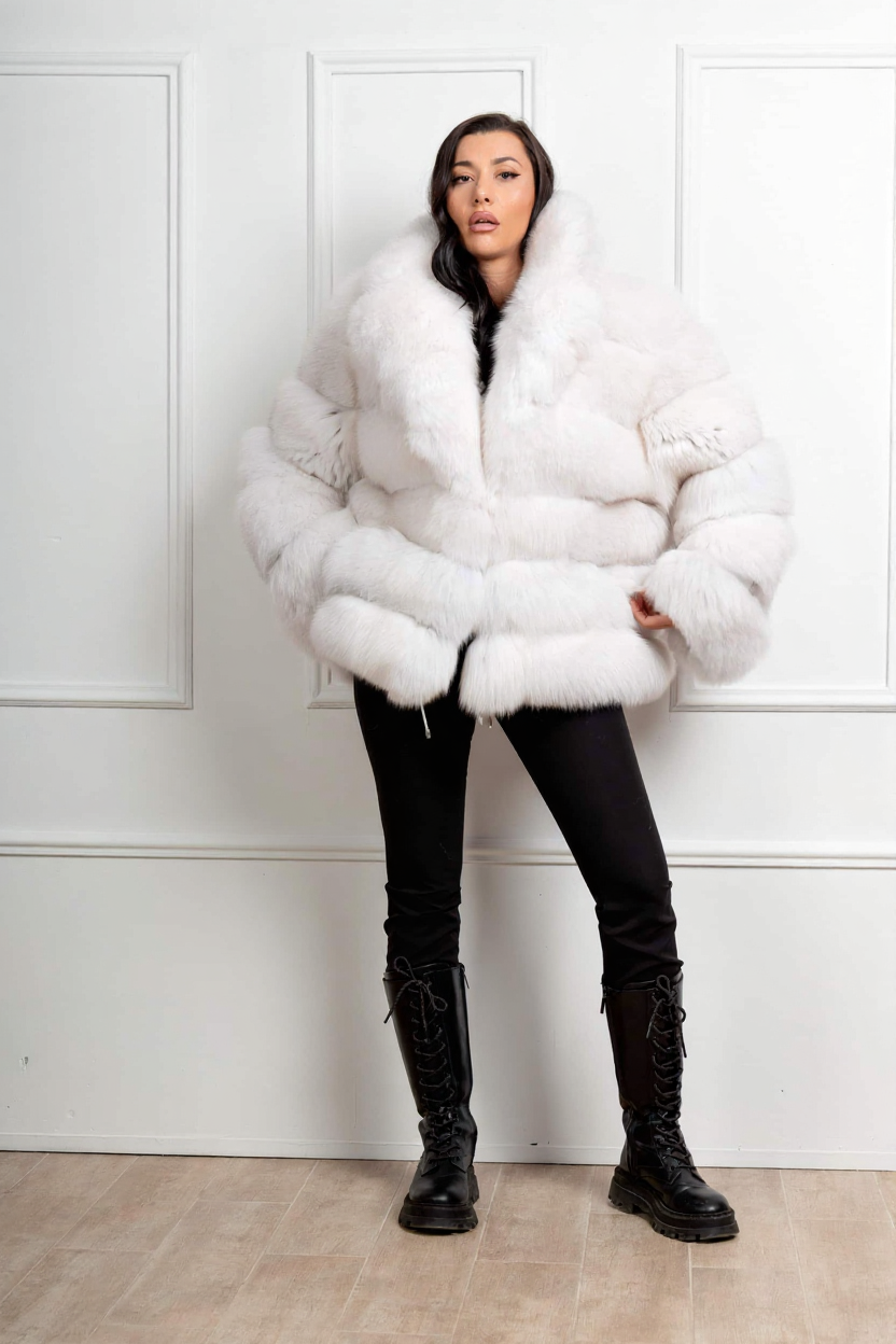 Dove | Luxury Scandinavian White Fox Fur Jacket With Notched Fur Collar