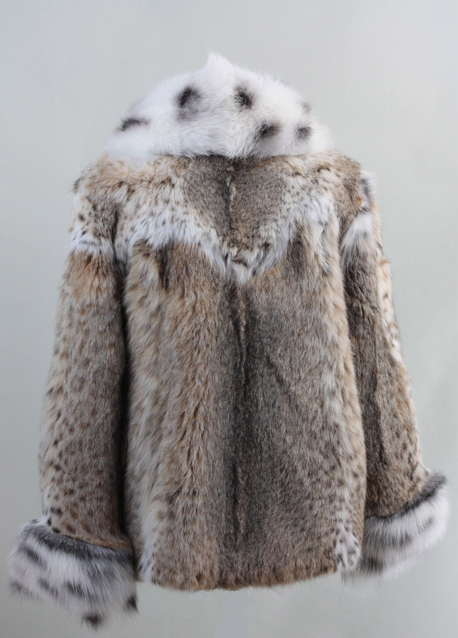 Fur Coat Bobcat Lynx White Spotted Fox Collar and Cuffs