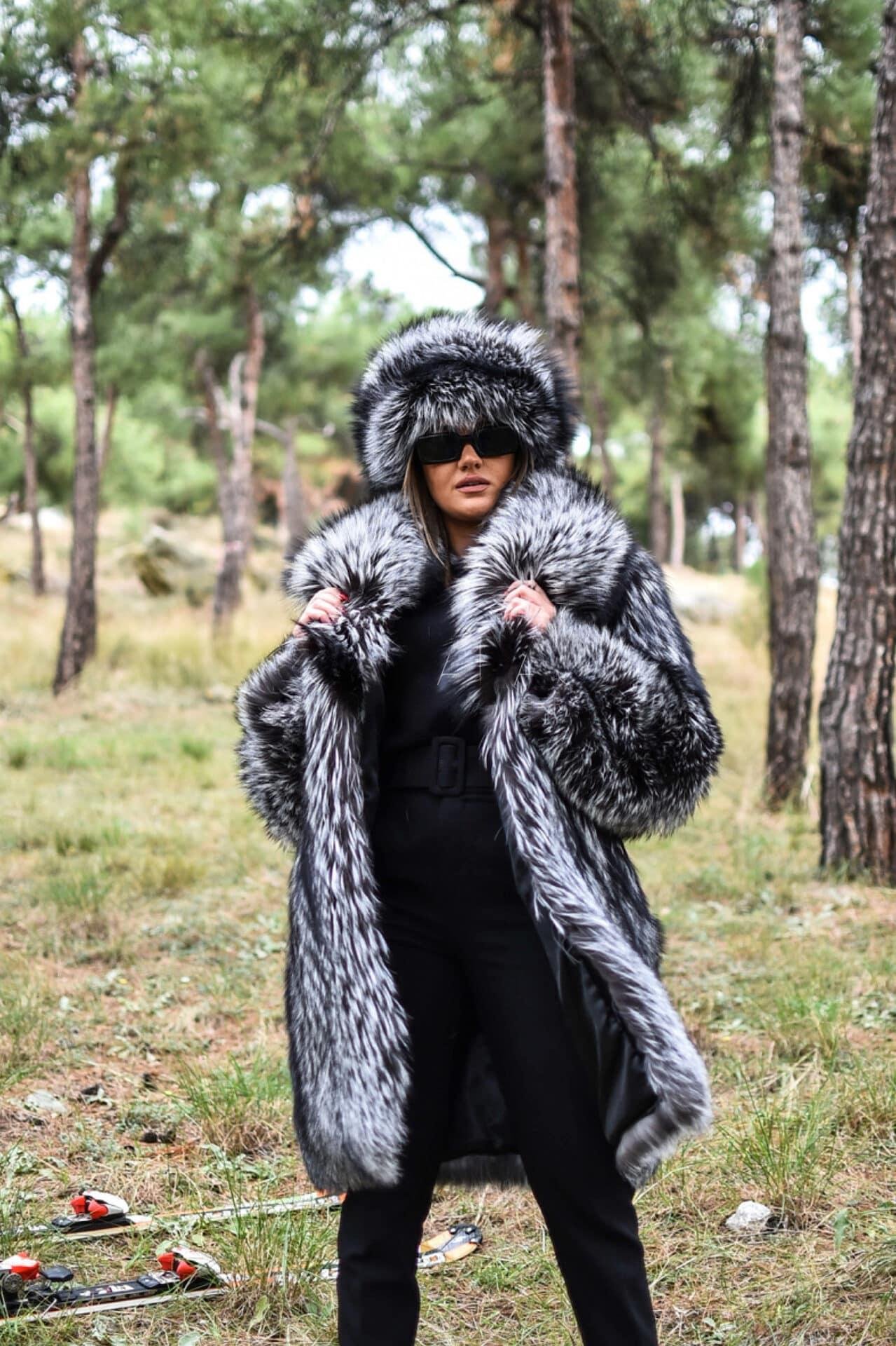 Kris | Luxury Scandinavian Silver Fox fur Coat Lavish Double Side Fur Hood