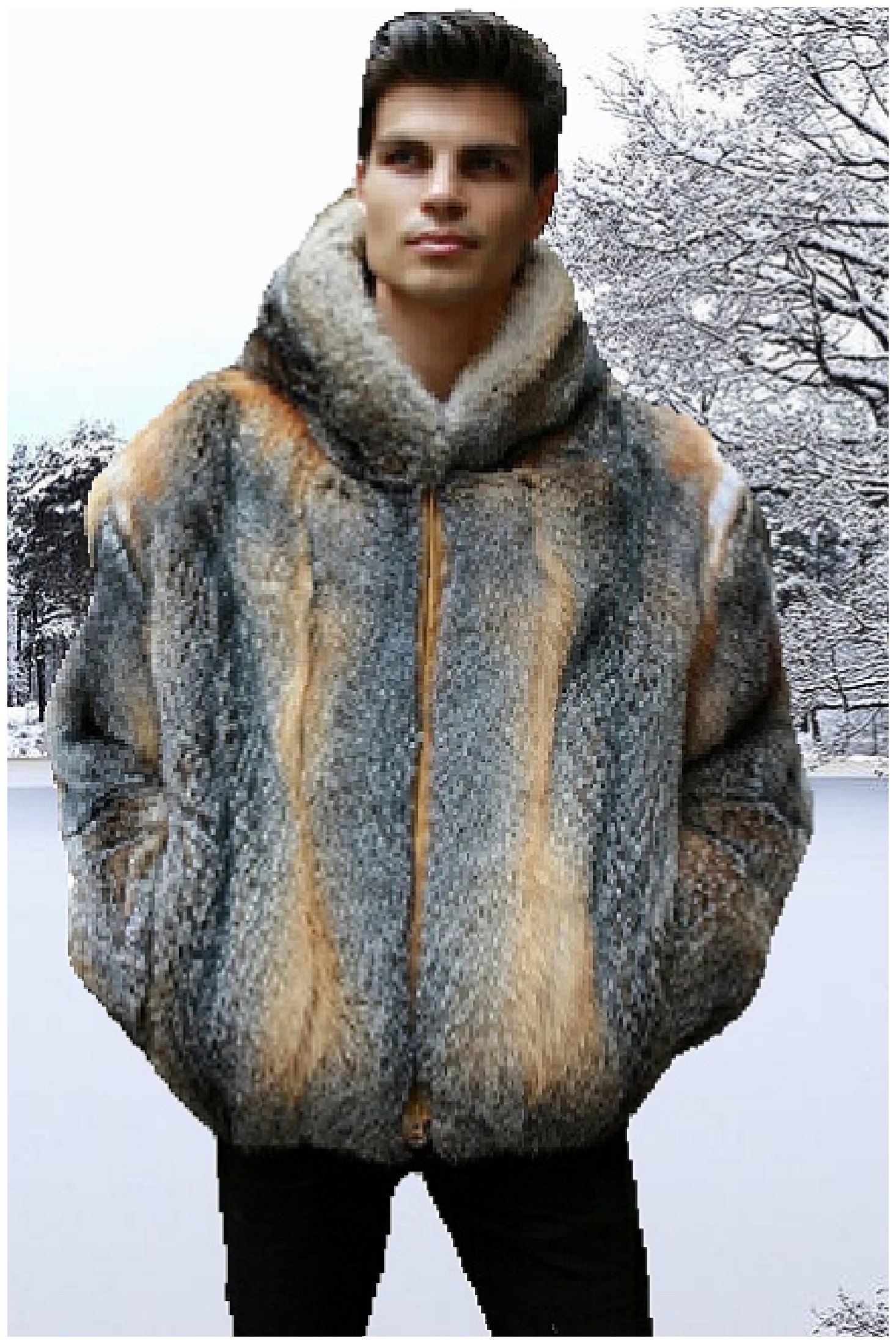 Grey Fox Fur Jacket with Hood
