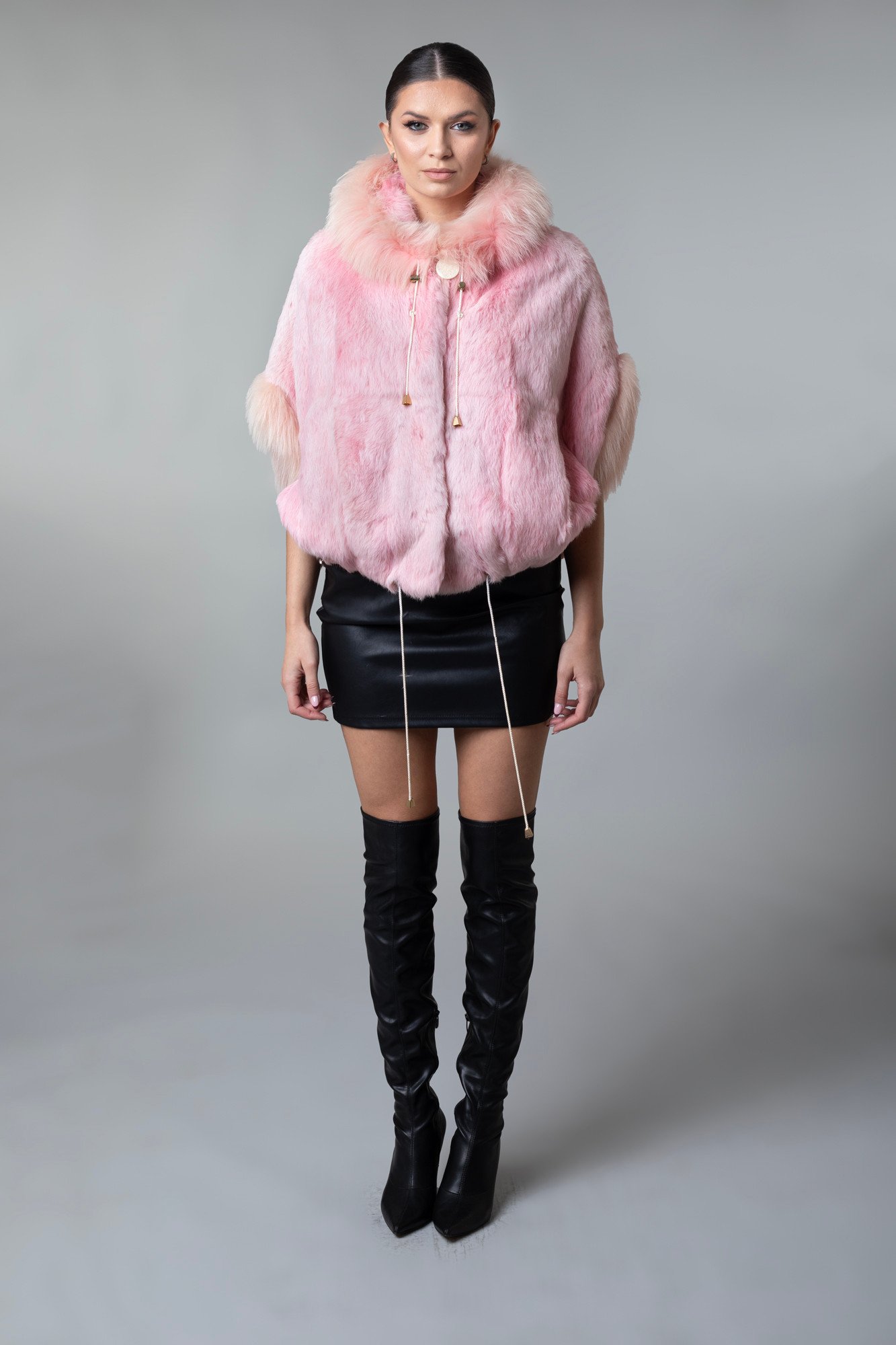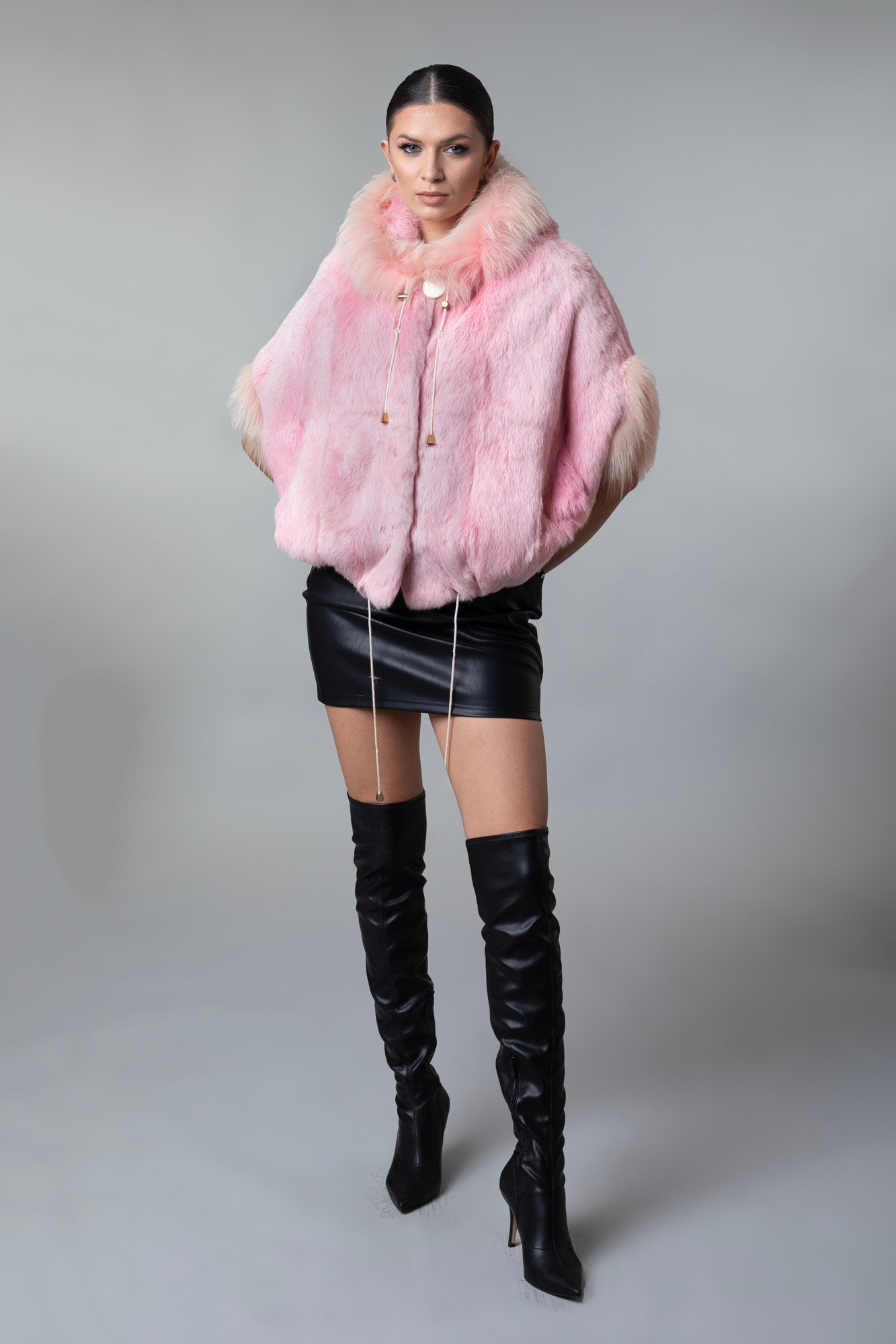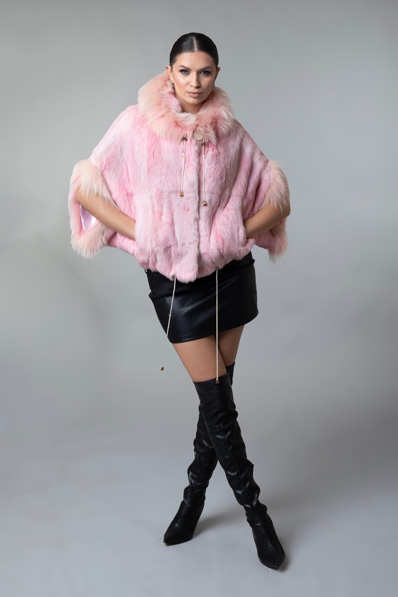 Hooded Pink Fur Cape