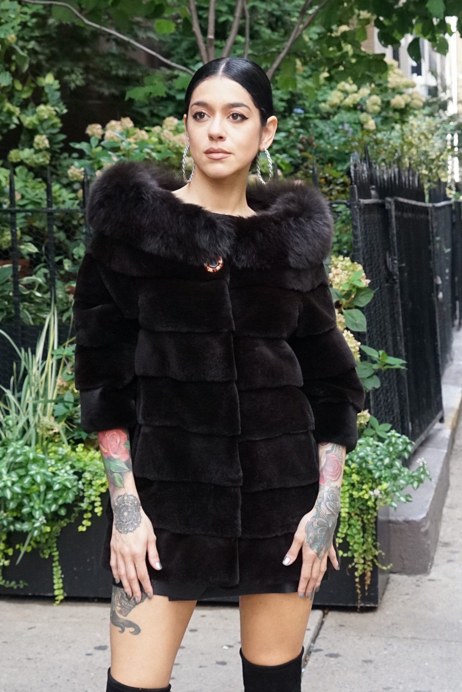 Black Sheared Rex Bomber Jacket Black Fox Collar Knit Trim 3837
