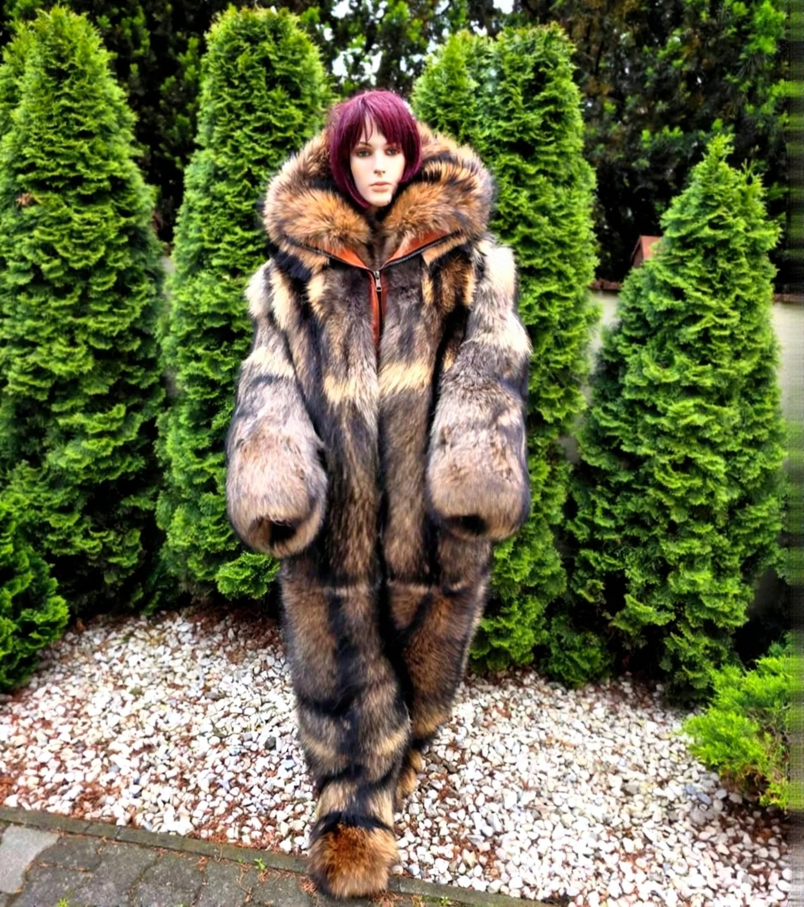 Double side Saga finn raccoon fur costume with whole skins