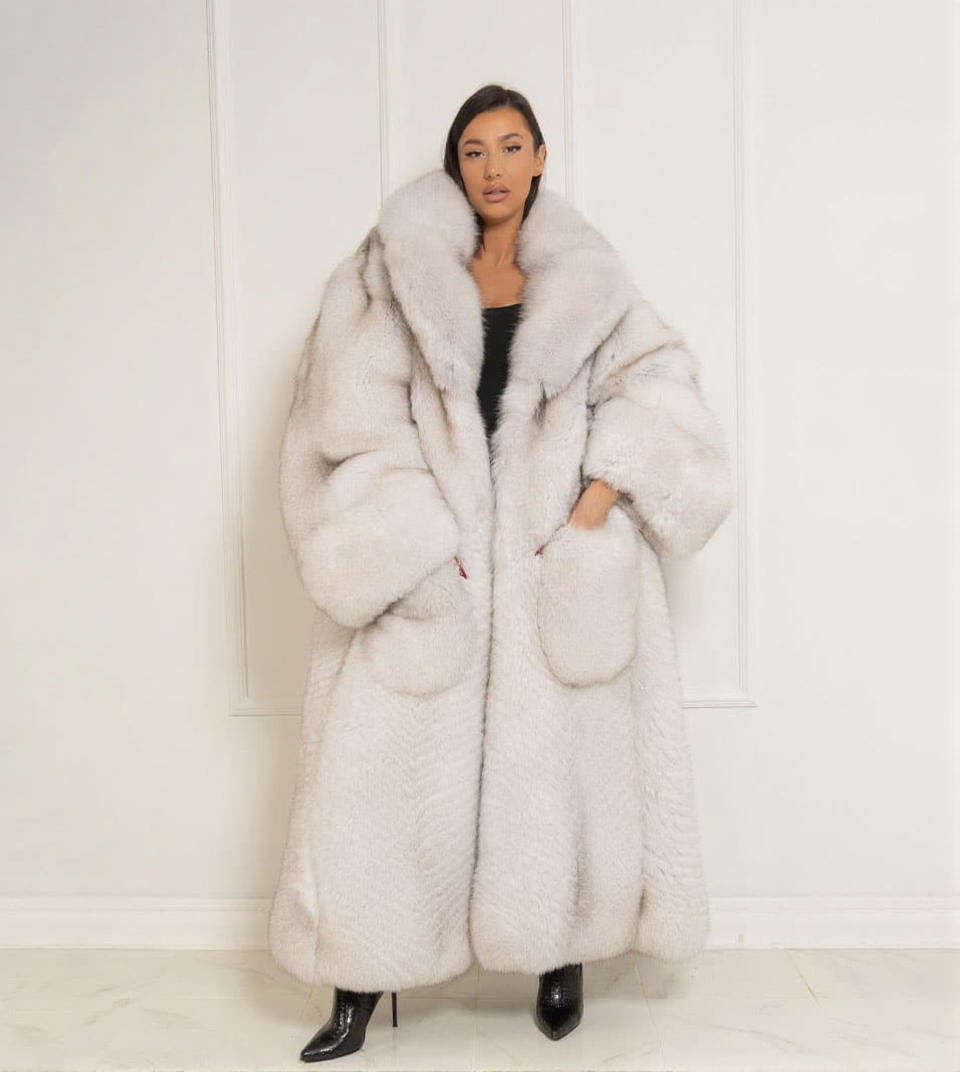 Kite | Luxury Scandinavian Blue Fox Long Coat With Lavish Double Sided Notched Collar