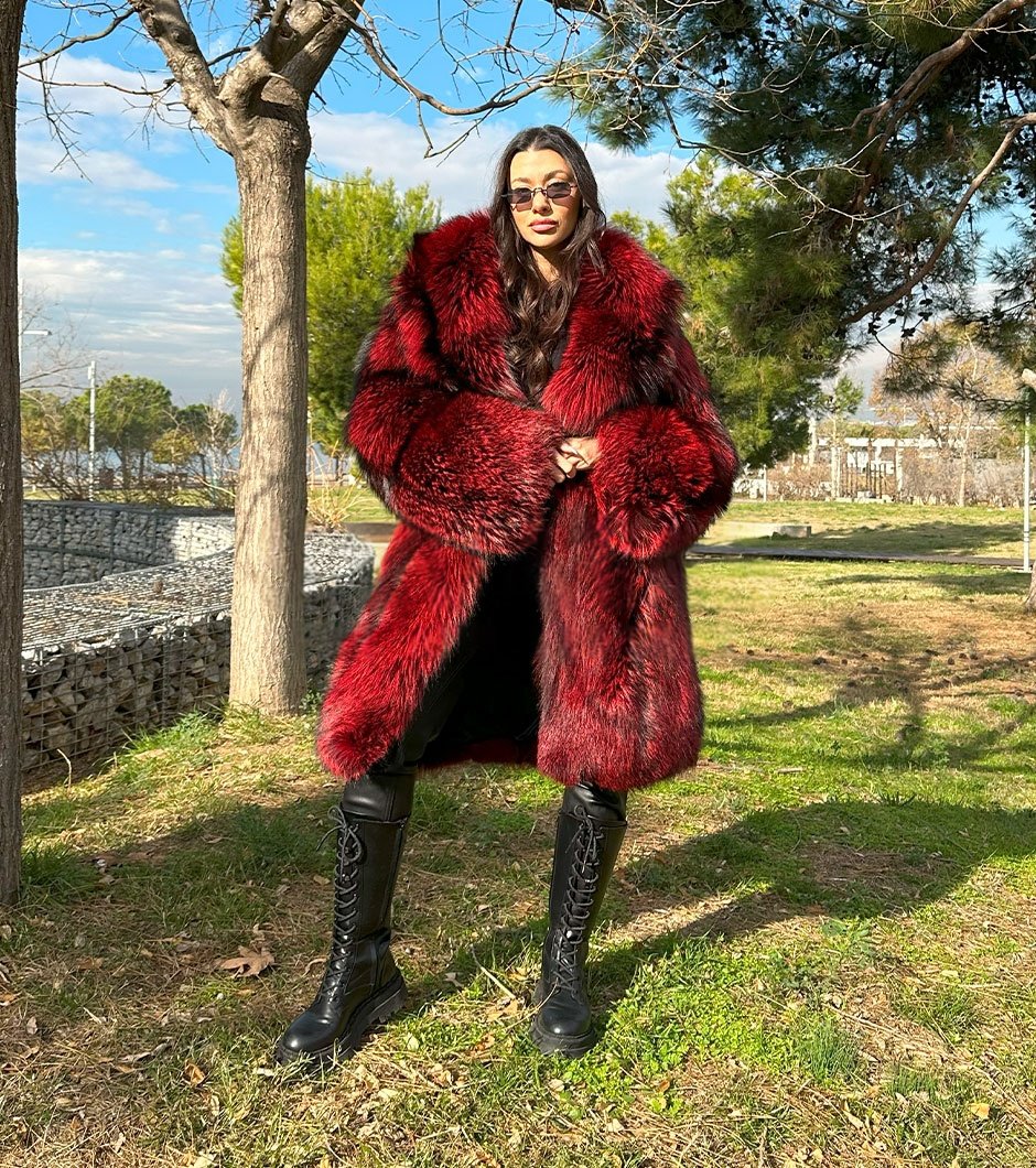 Be the first to review “Kylie | Luxury Scandinavian Red Passion Silver Fox Coat With Lavish Smoking Collar” Cancel reply