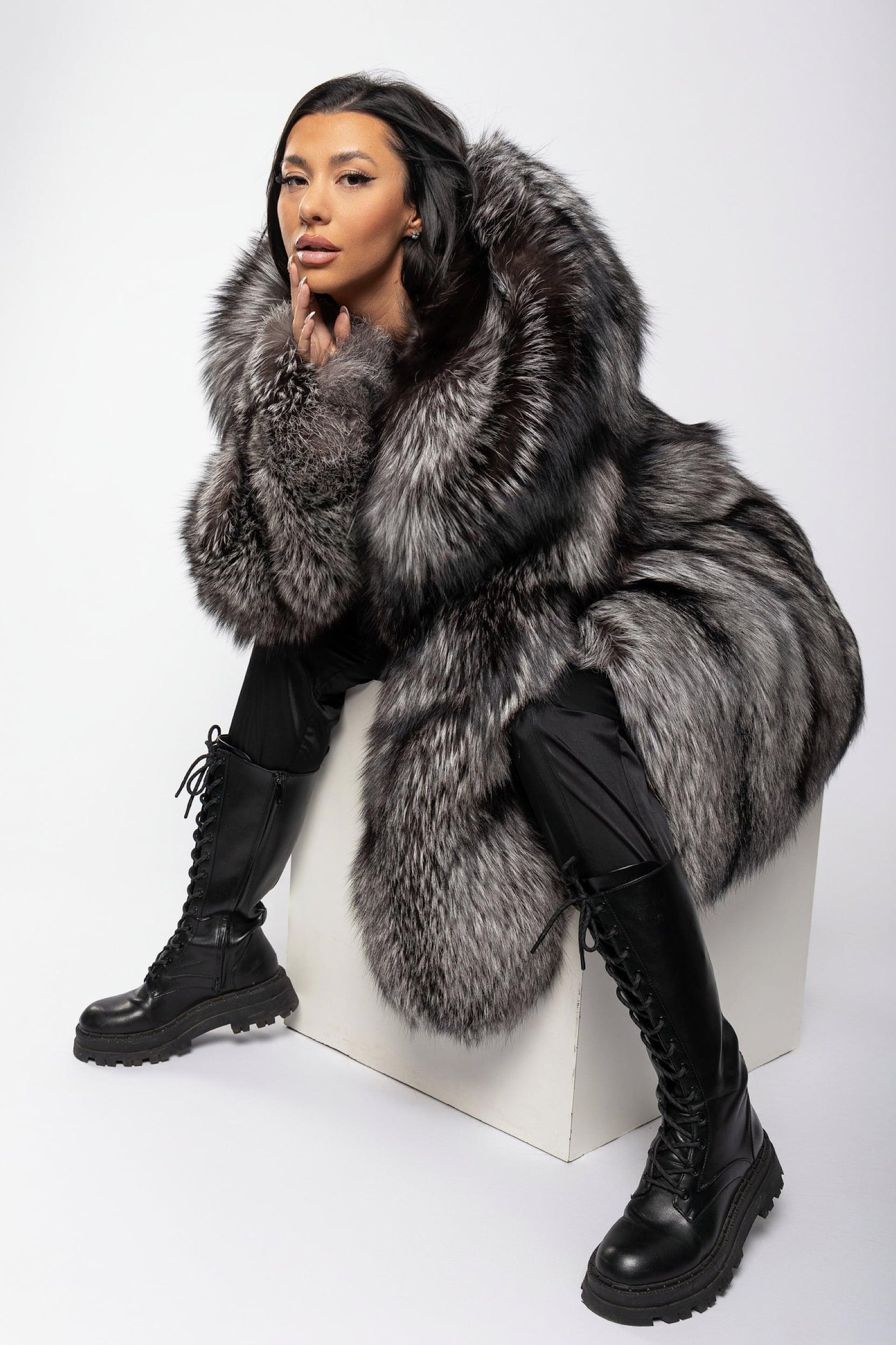 Moon | Luxury Scandinavian Silver Fox Fur Jacket With Lavish Big Fur Hood
