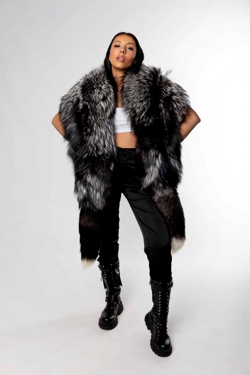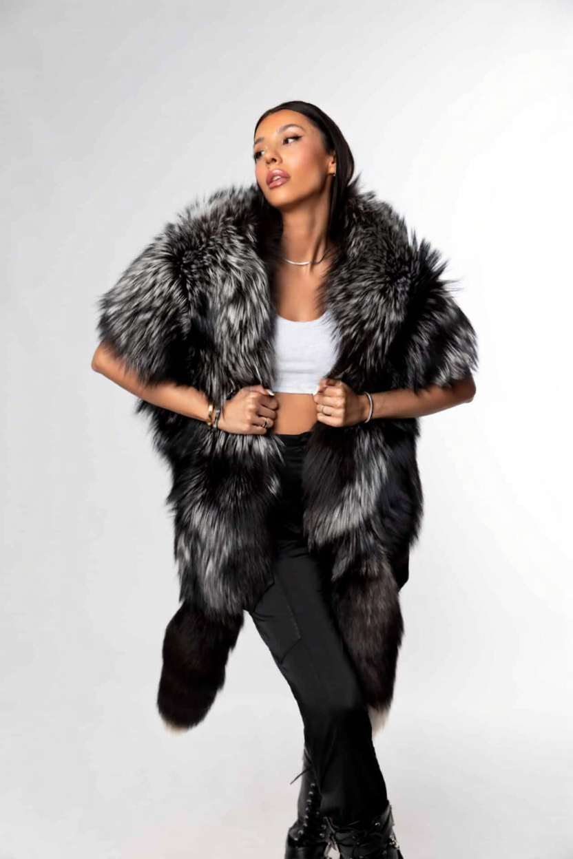 Luxury Classy Silver Fox Fur Cape-Etol With Tails
