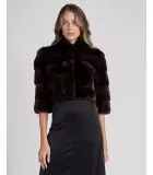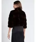 Those who appreciate luxury and fine things will adore the Velma mahogany mink bolero. Made from premium mink pelts with gorgeous sheen and color, the bolero is arranged with a pleasing horizontal pattern and stand collar. With its 3/4 length sleeves and cropped length, the Velma mink fur jacket is perfect for pairing with evening wear or dressing up jeans.