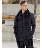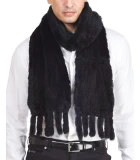 Men’s Black Knit Rex Rabbit Fur Scarf with Tassels Description