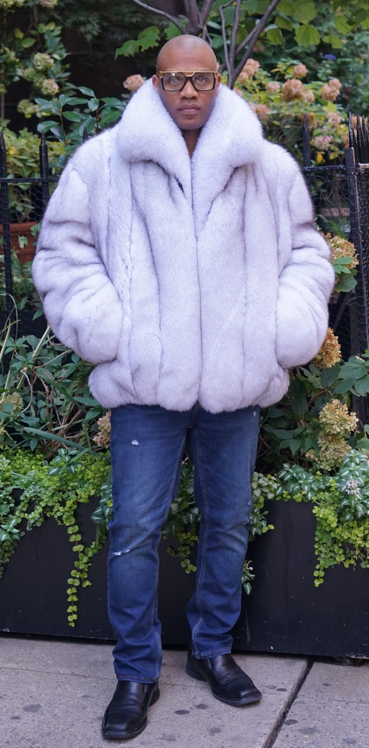 Men’s Blue Fox Fur Bomber Jacket 5533