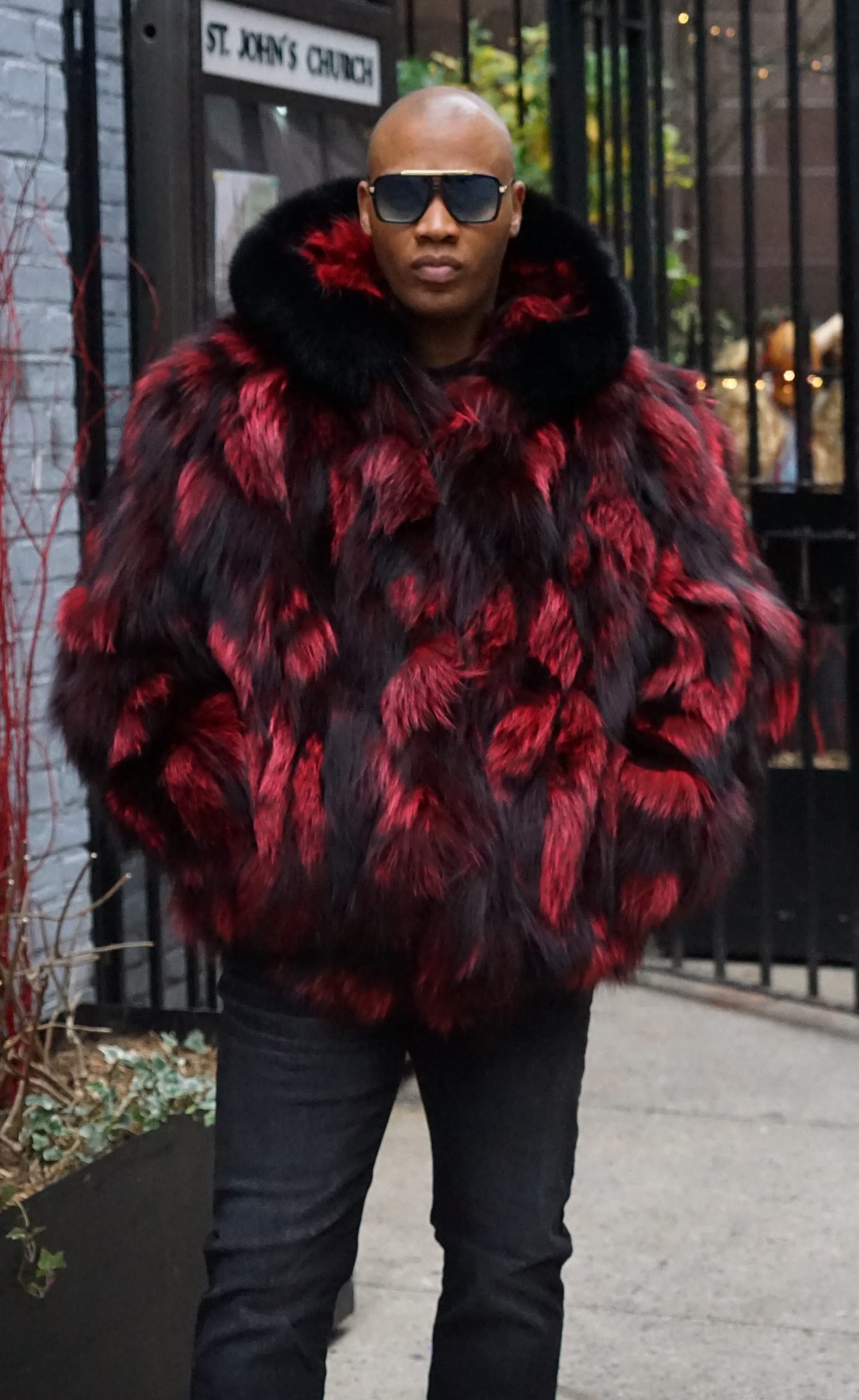 Men’s Burgundy Fox Jacket Hooded