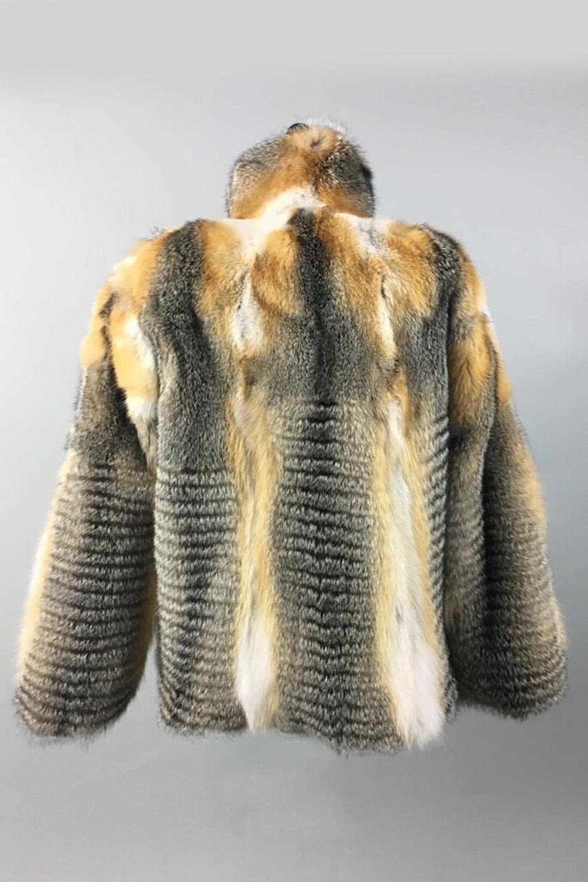 Take the cold weather out of the equation in style and luxury this winter with the cross fox bomber jacket. Wild , raw natural color that will match perfectly your brown leather belt and boots. Stand up collar , straight classic cut.
