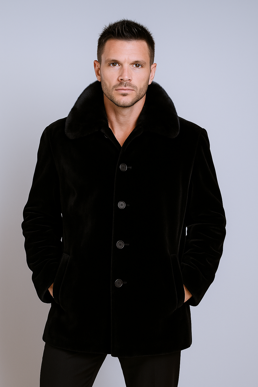 If your looking for a fine fur with classic elegance, this Men’s Black Sheared Mink Fur Stroller single breasted makes a perfect winter jacket. Wear this fabulous men’s fur stroller walking the town of Greenwich Connecticut, strolling Newbury St, in Boston, shopping at the Wharf in San Francisco or just dining or lunching with friends. This mink stroller can be worn sporty or dressy.—– “The difference between style and fashion is quality.” – Giorg