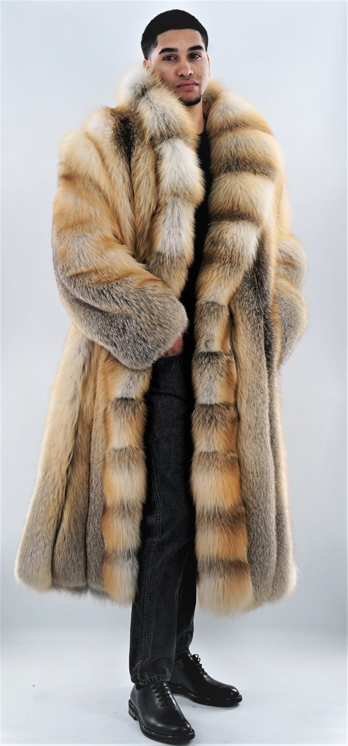 This Golden Isle Full length Men’s Fur Coat is spectacular. The soft blond golden hair defines this fur from others. Making an entrance to a club, walking the cold streets of Chicago, this fur will keep you warm and noticed.