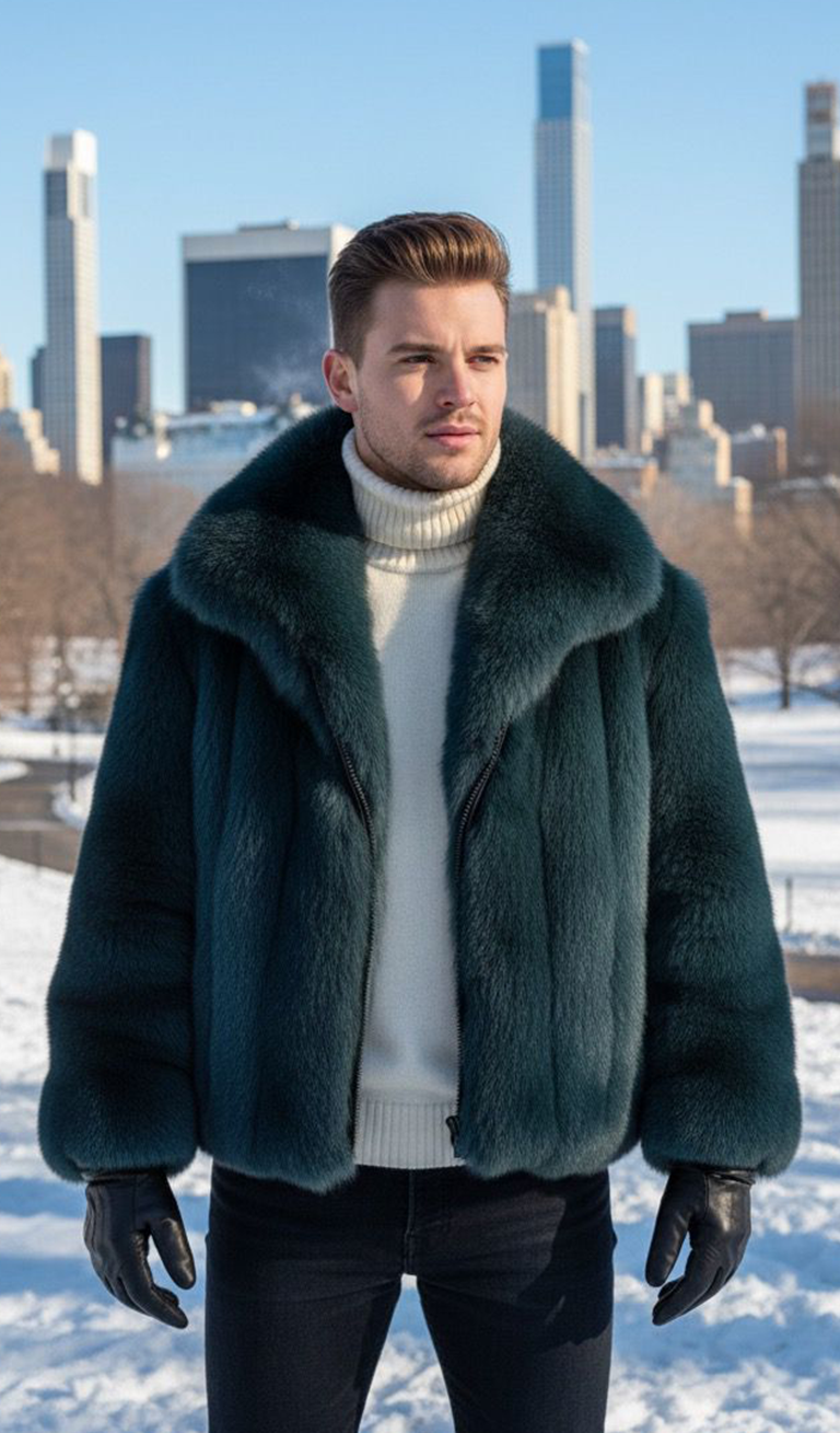 A Men’s Hunter Green Fox Jacket is a bold, luxurious, and undeniably statement-making piece. Hunter green is a rich, deep earth tone, while fox fur provides significant texture and volume.