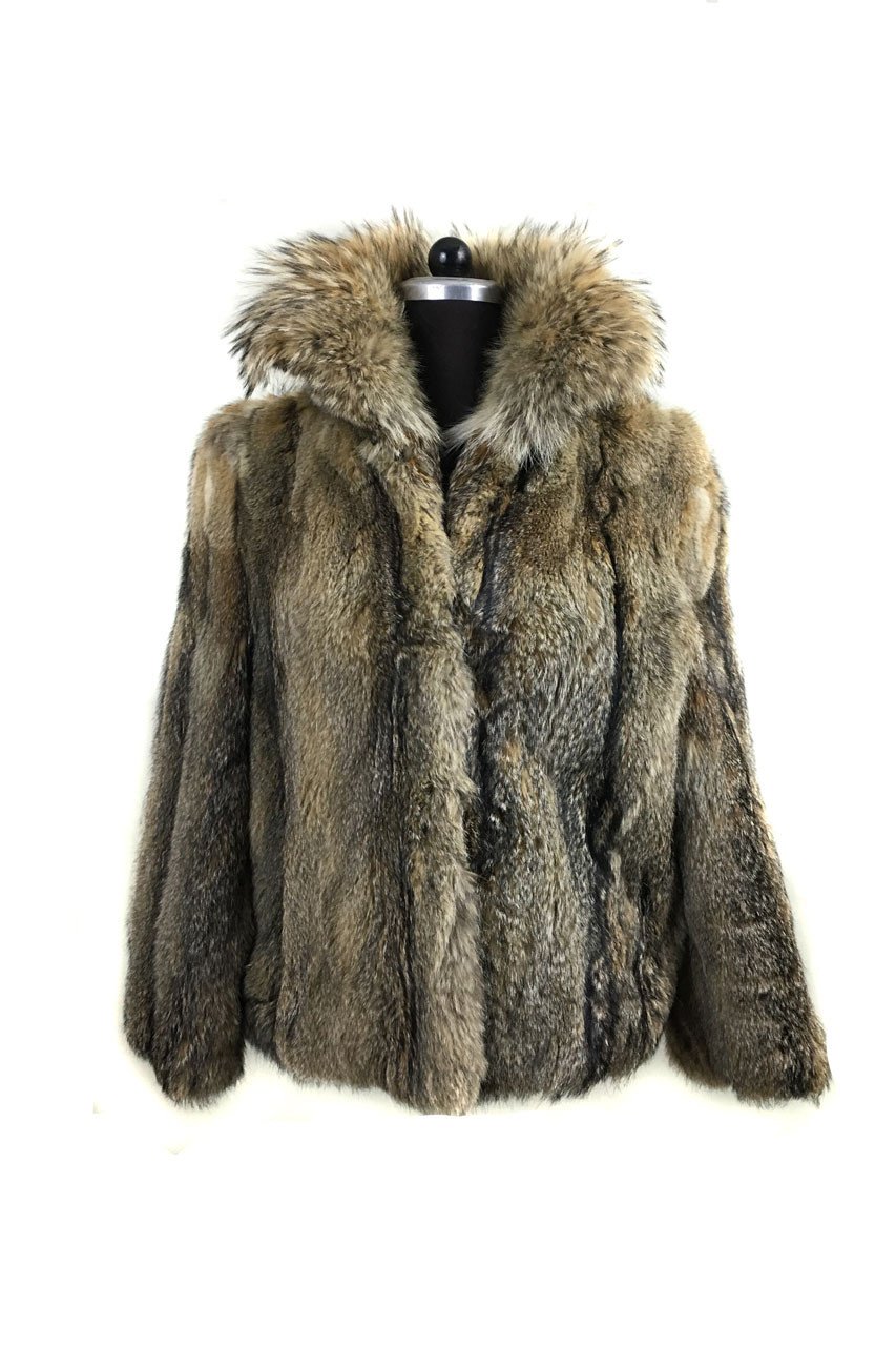 Men’s Lynx Fur Coat With Fin Raccoon Collar Halfskins