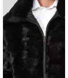 Mink Fur Bomber Jacket Reversible to Leather in Black Description